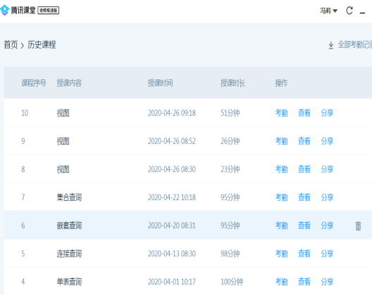 为了让员工能够保质保量的完成学习任务,冯莉老师根据不同课程的实际情况,选择不同的教学平台。比如数据库原理课程,由于MOOC视频内容相对较少,冯莉老师采用腾讯课堂直播讲解的方式开展理论教学,利用腾讯课堂的回放功能,可以保证同学们在课上听不懂的地方能够及时回看。需要上机实验的时候,则采用腾讯会议的方式开展,利用腾讯会议每一位参与者均可以分享屏幕的功能,能够更好在同学们出现问题时答疑解惑。同时结合课程QQ群,同学们可以分享问题截屏,老师在线解答,实时沟通。