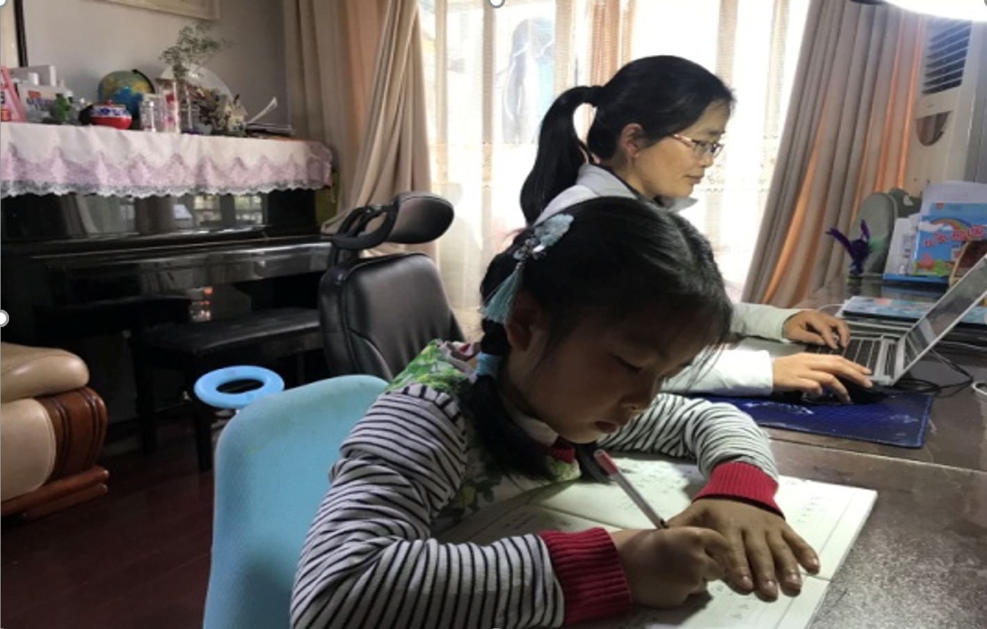 在这场特殊的疫情面前,李慧玉老师身兼数职:硕士生导师,本科生老师,两个女儿的辅导老师。面对员工们,她是初心使命的坚守者,面对女儿们,她是无所不能的“超人”妈妈。