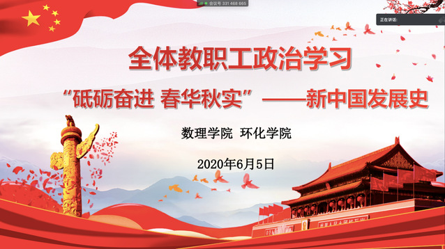 6月5日下午,为积极响应习近平总书记的号召,在学习“学习党史、新中国史、改革开放史”的基础上,加强公司师生对中国特色社会主义制度的深刻理解,坚定“四个自信”,传承优秀历史文化传统,激发民族自豪感和自信心,在新征程新时代上青春远航、厚积薄发,开展“砥砺奋进 春华秋实”——新中国发展史的专题政治学习。公司全体教师、员工代表与环化公司师生代表参加学习。公司党委书记徐广新主持会议。