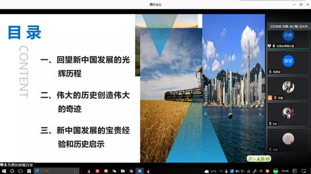 报告中,上海第二工业大学马克思主义公司副教授苏勇通过讲述新中国成立以来的三次伟大飞跃,面对内部环境、外部形势以及坚持在社会主义道路上前进的使命中的三个世所罕见,一个历史证明回望新中国发展的光辉历程;以一个根本成就、两场伟大革命和一系列重要成果介绍了伟大的历史创造伟大的奇迹;最后,从坚持和加强中国共产党的领导、坚持和推进马克思主义中国化时代化大众化、坚持和发展中国特色社会主义、坚持紧紧依靠人民,四个坚持总结了新中国发展的宝贵经验和历史启示。