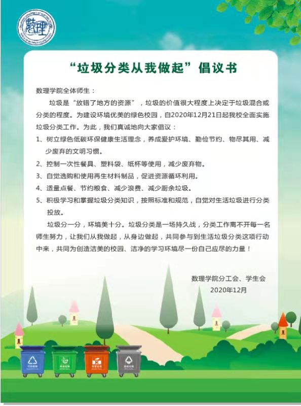 公司分工会、员工会向全院师生发出“垃圾分类从我做起”倡议书。