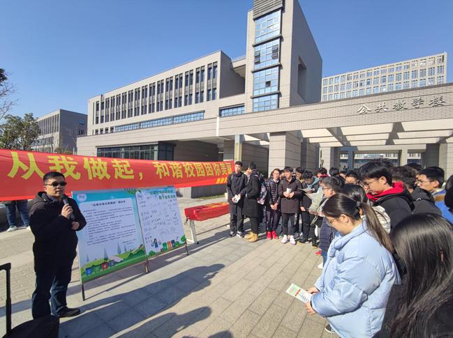 12月21日中午,公司在临港校区执勤点开展了垃圾分类宣传及线下签名活动。现场设置横幅“垃圾分类从我做起,和谐校园因你美丽”、“自觉规范垃圾分类,共创文明美好校园”。公司党委副书记叶华刚向在场师生介绍了开展垃圾分类工作的意义及公司垃圾分类集中投放及定时定点管理的规定,倡导各班级员工党员、员工干部积极带头做好垃圾分类,带动班级员工养成垃圾分类的习惯。