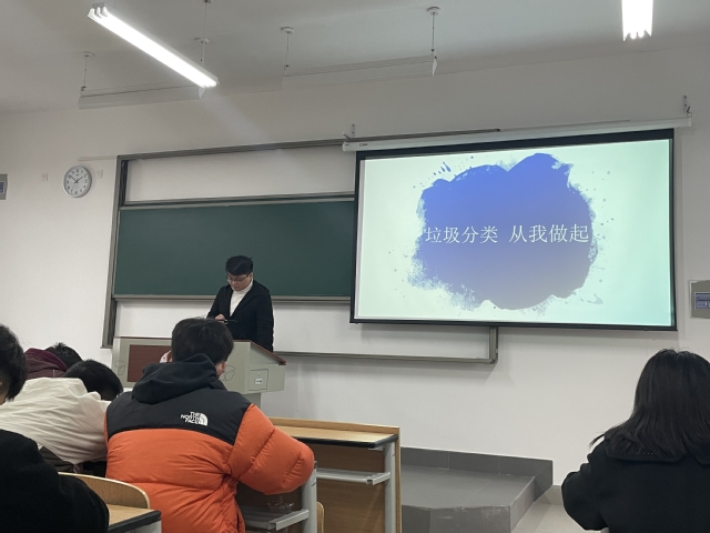 之后,邓金奥同学以幽默诙谐的表情包和流行的网络用语来讲解垃圾分类,开展“垃圾分类,你我同行”为主题的垃圾分类竞猜活动,激发了同学们对垃圾分类小知识的兴趣。