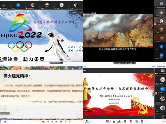 寒假期间,员工党员以“学习贯彻党的十九届六中全会精神”、“学习冬奥会精神,体悟大国担当”、“学习贯彻习近平总书记关于党史学习教育的重要指示”、“领悟百年之党史,迈进时代新征程”为主题分别进行深入学习,在易班平台“数理书苑”提交了学习感悟和微党课视频。首日教育期间,信物本科生低年级党支部和高年级党支部开展主题党日,进一步交流学习的心得体会。
