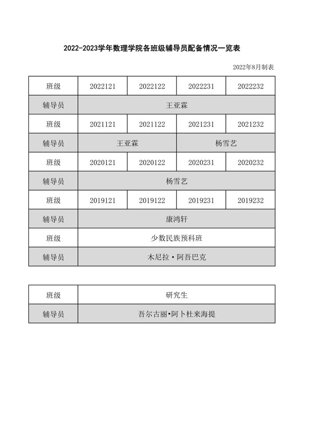 2022-2023学年yl23455永利各班级辅导员配备情况一览表