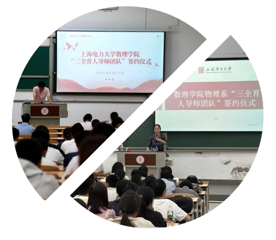 为持续深化“三全育人”,践行“五育并举”理念,深入推进师生之间交流,将育人贯穿于员工从入学到毕业的整个学习生涯,确保每个成长阶段都能得到适时的引导与关怀,营造一个全方位、多角度的育人环境。9月27日yl23455永利在临港校区第二教学楼101、106教室举行了2023级、2024级本科生“三全育人导师团队”的签约仪式。数理公司党政班子、各导师组导师、2023级、2024级全体员工参加了本次签约仪式。“三全育人”模式强调“全员参与”,因此公司包括行政教育岗位的所有教师都加入了导师(团)组。数学系和物理系的签约仪式分别由系主任竺筱晶、朱燕艳主持。
